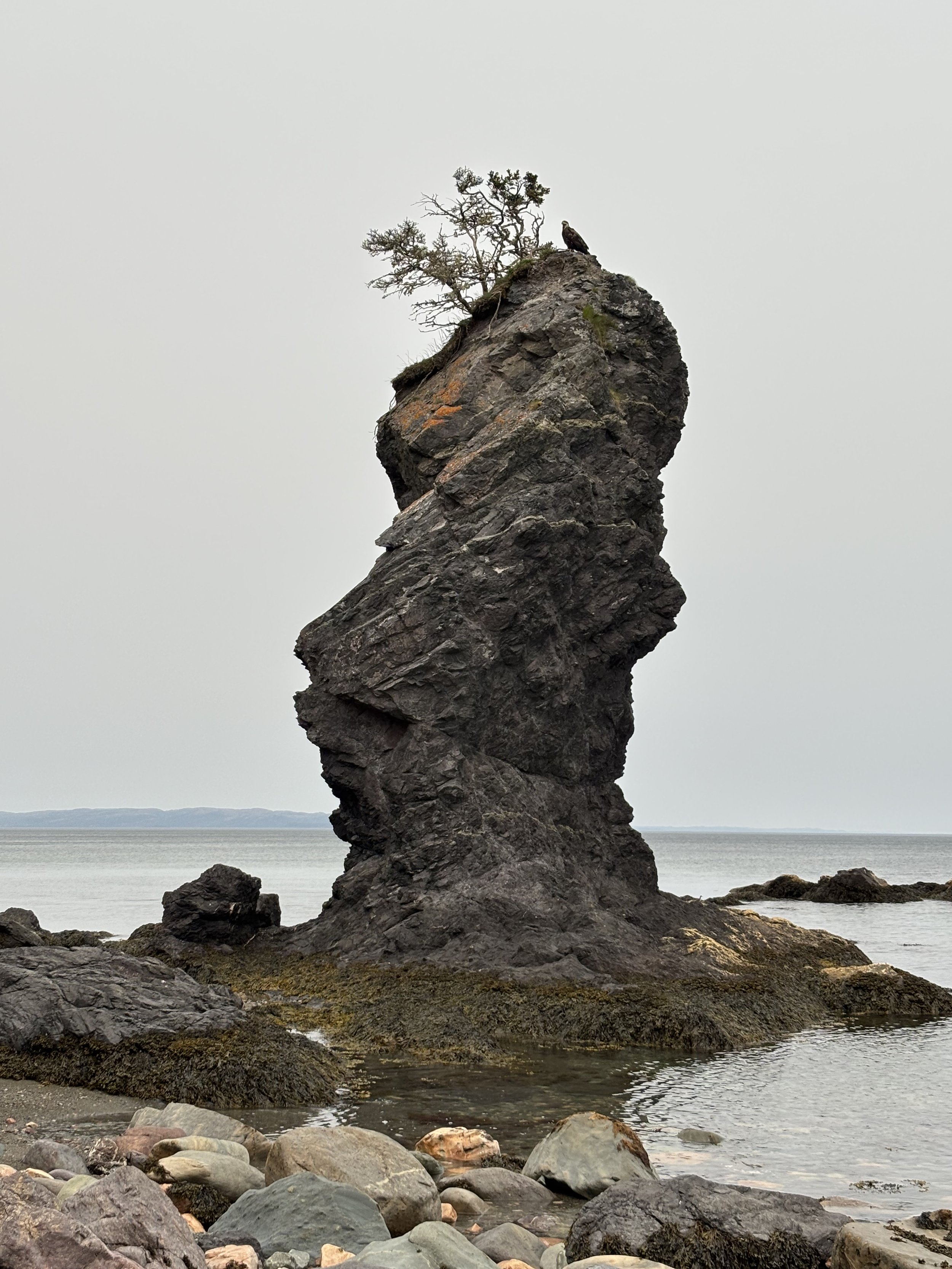 A coastal outcrop showcasing pillow basalt formations along the rugged shoreline, Pouch Cove