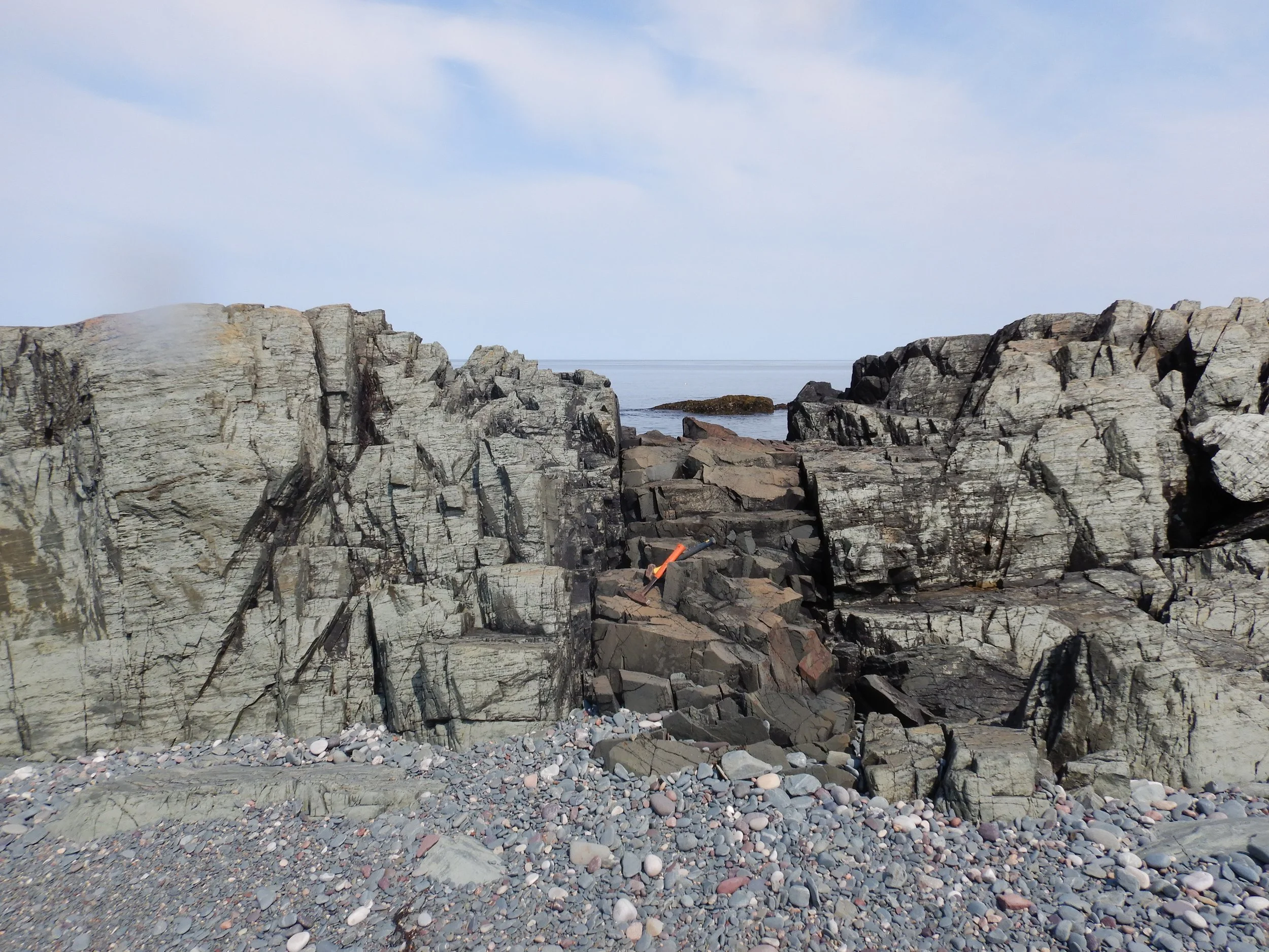 Diabase dyke cutting Cambrian Shale, Near Point May, Burin