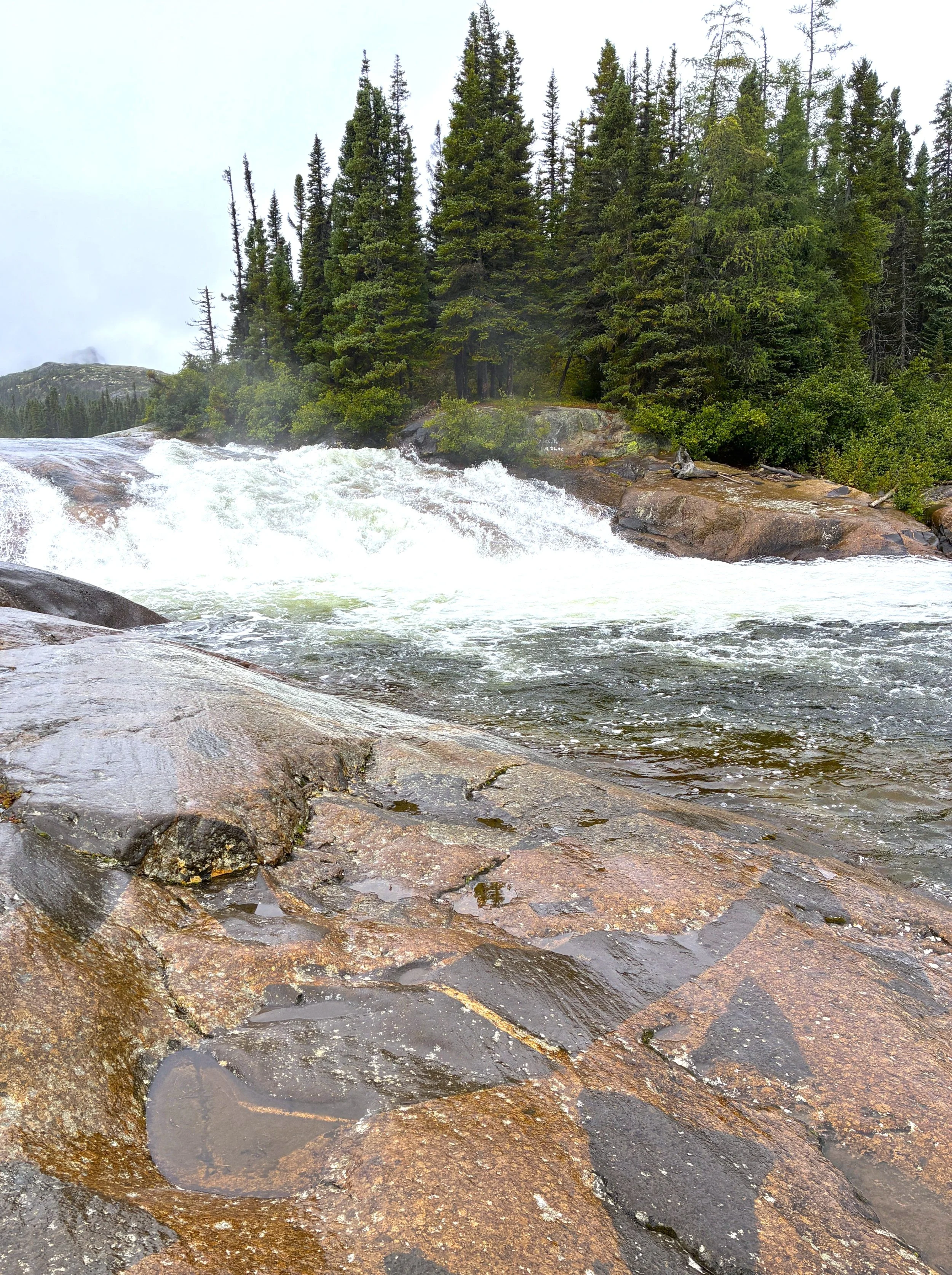 Striated and glacially polished mafic bedrock. Ice flow is from right to left. Tikkigakson peninsula, Northern Labrador
